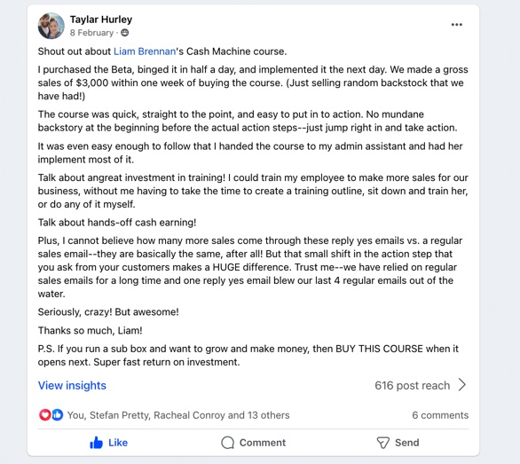 "More great training from Liam, well structured, easy to follow and implement with plenty of examples and templates. I've implemented the reply yes process in my business and am seeing great results!"